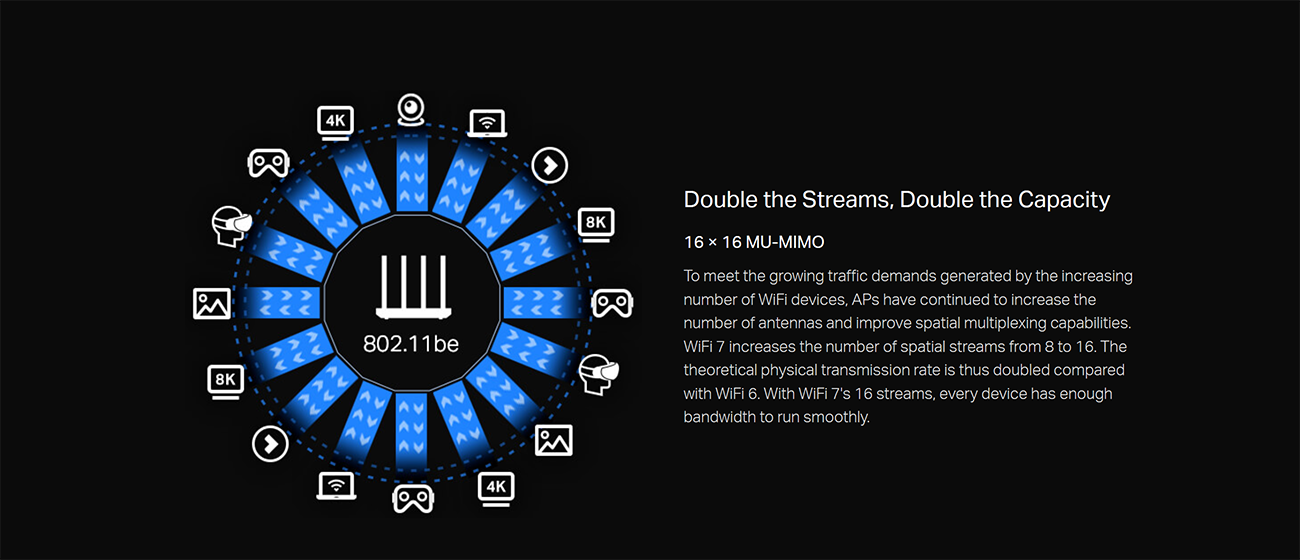 Building upon the Multi-User, Multiple Input, Multiple Output (MU-MIMO) technology introduced in earlier standards, WiFi 7 takes this concept to new heights. With the potential for even more simultaneous connections, this feature caters to environments with a high density of connected devices, such as stadiums, airports, and smart cities.